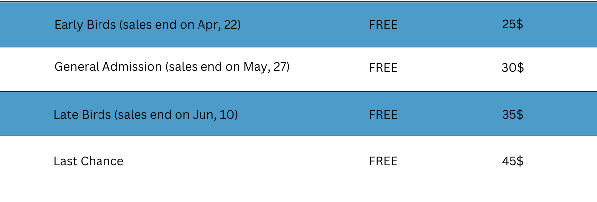 Early Birds (sales end on Apr, 22)
