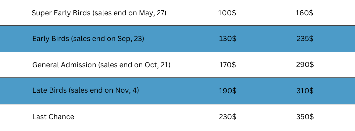Super Early Birds (sales end on May, 27)